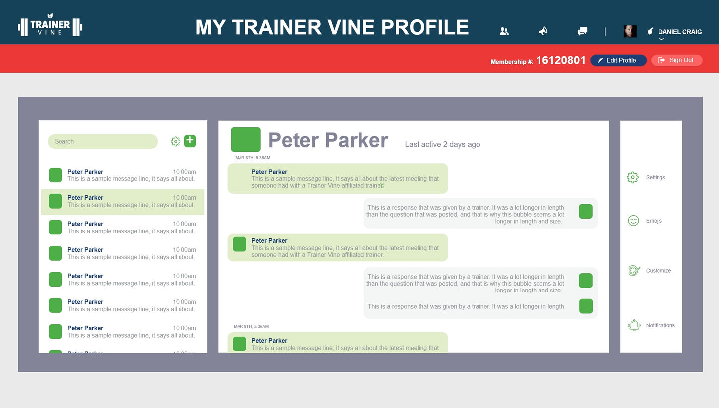Trainer Vine was designed and developed. Now it is amassing a large amount of gyms, trainers, and clients during beta testing. Trainer Vine should soon be under final negotiations to make its way into app market stores.